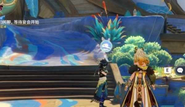 抵达流泉之众后,找到指定位置触发对话。随后,玩家可在庆典区域与各角色闲聊,如伊安珊位于舞台下方高台旁,恰斯卡则在高台下的水边等。