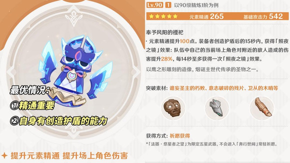 祭星者之望凭借其高元素精通和独特的增伤特效,在多种战斗场景下都能发挥关键作用。无论是辅助角色还是输出角色,只要能够创造护盾或需要元素精通,都可以考虑装备这把武器。
