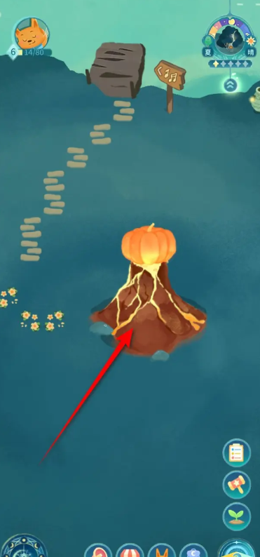 首先要面对的是修复南瓜火山的任务。点击火山,进入修复界面,按照游戏提示一步步完成修复。
