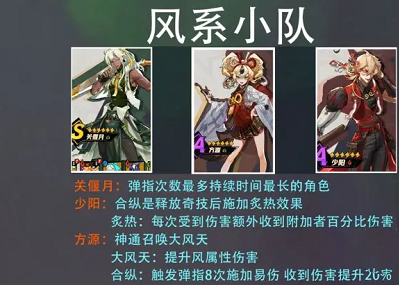方源:兼具控制与增益双重功效,能够召唤大风天强化全队风属性伤害,其合纵技能在特定条件下还能使敌人进入易伤状态,进一步提升队伍伤害输出。