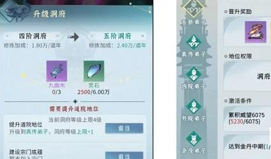 洞府升级:提升洞府等级可显著增加自动吐纳灵气的速度,这是快速提升修为的关键。升级所需材料九曲木可通过宗门贡献兑换。
