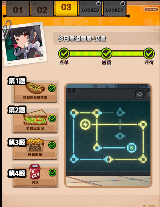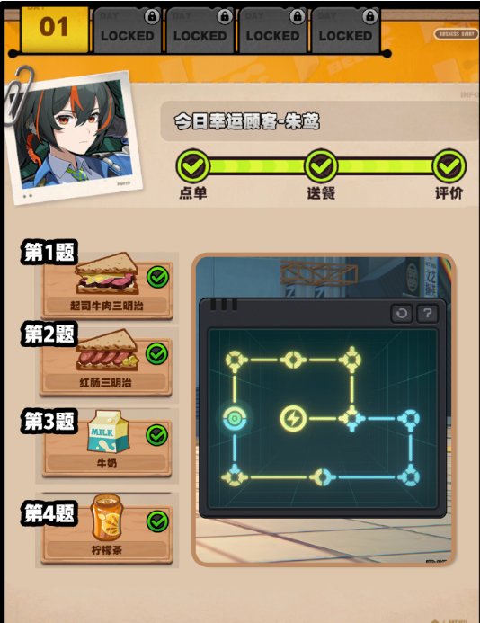 在路线调整界面,根据提示连接节点,确保送餐路线畅通。调整完成后,继续对话剧情。