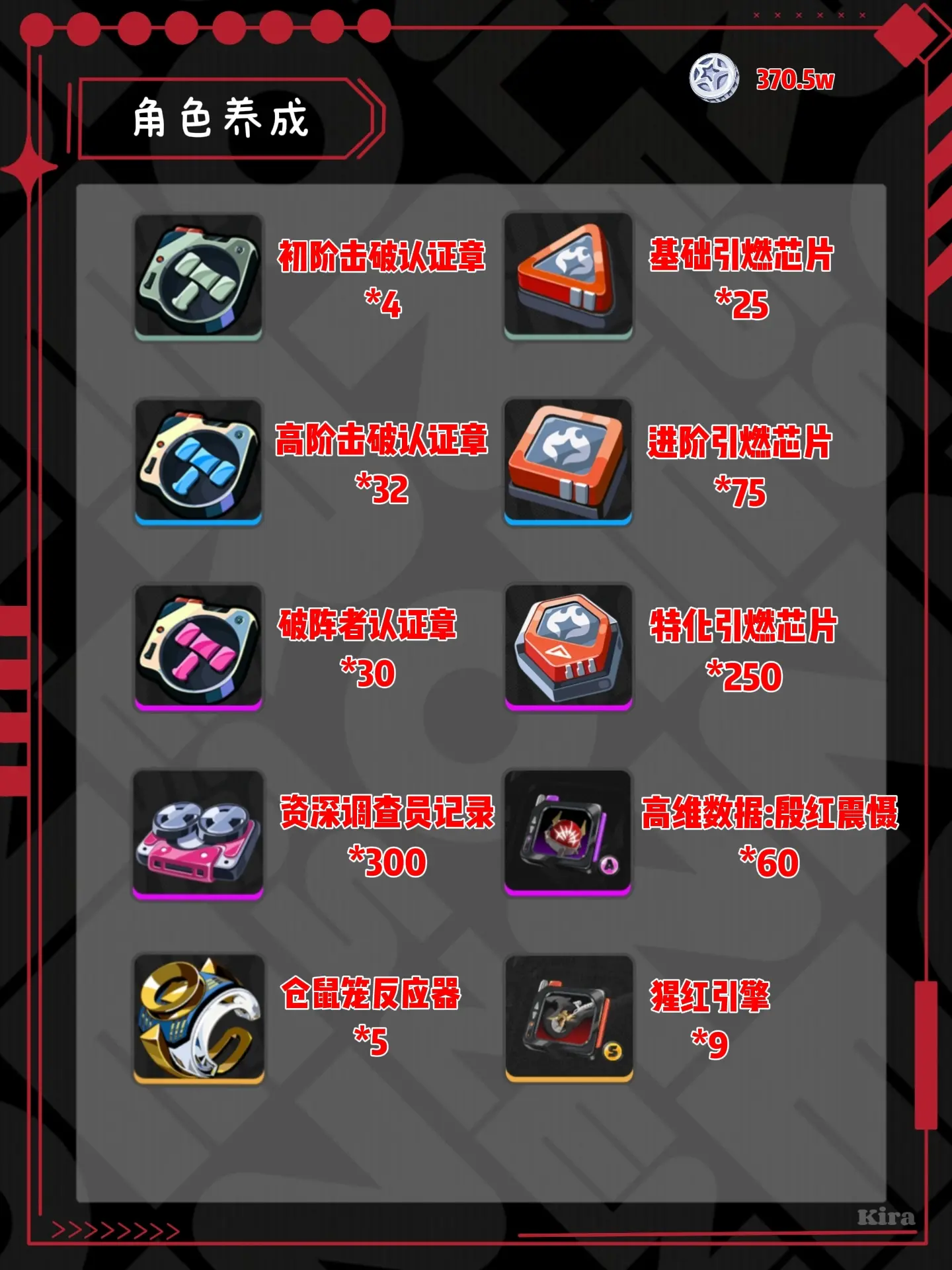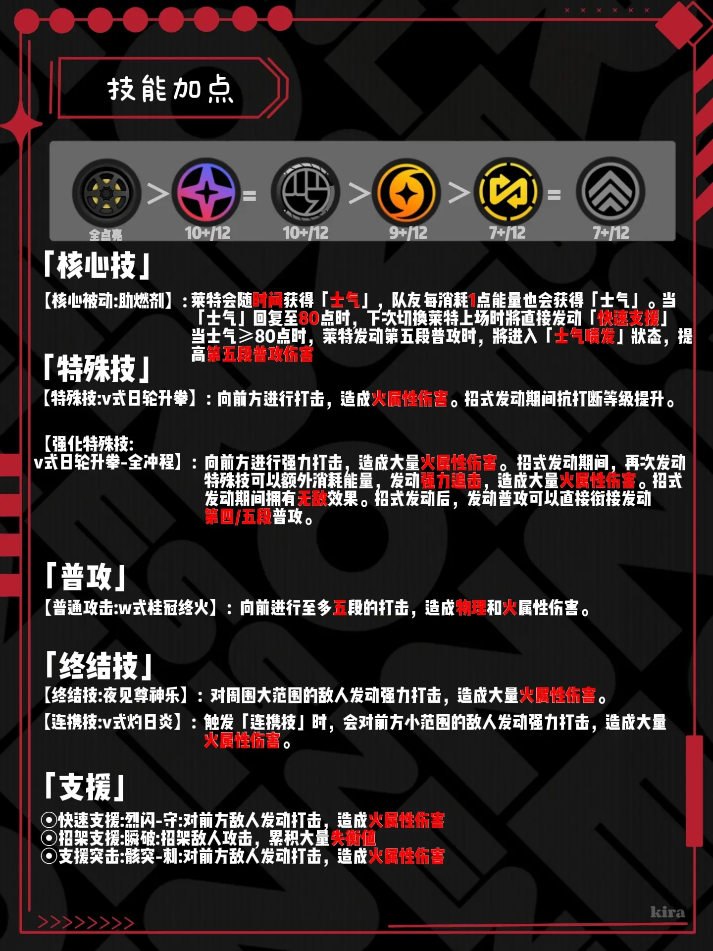 技能加点:重点培养核心技、特殊技、普攻、终结技、支援技和闪避技。