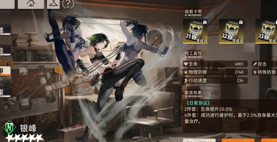 日冕协议四件套:这是银峰的首选卡带。它不仅显著提升生命值,还能在成功援护时回复生命,与银峰的生存定位完美契合。