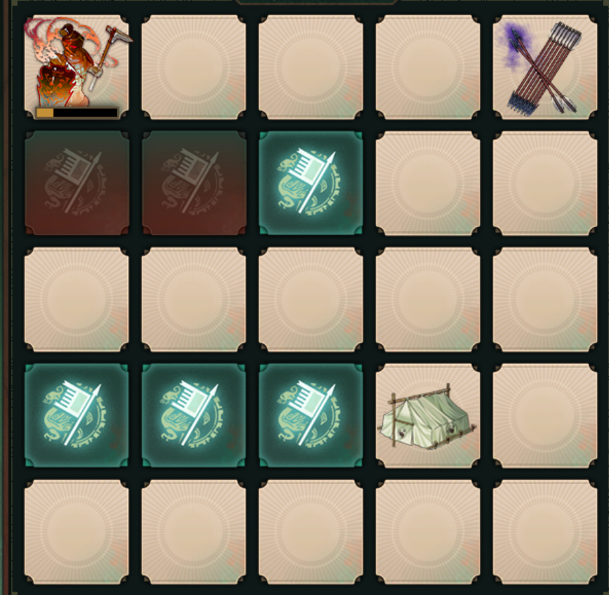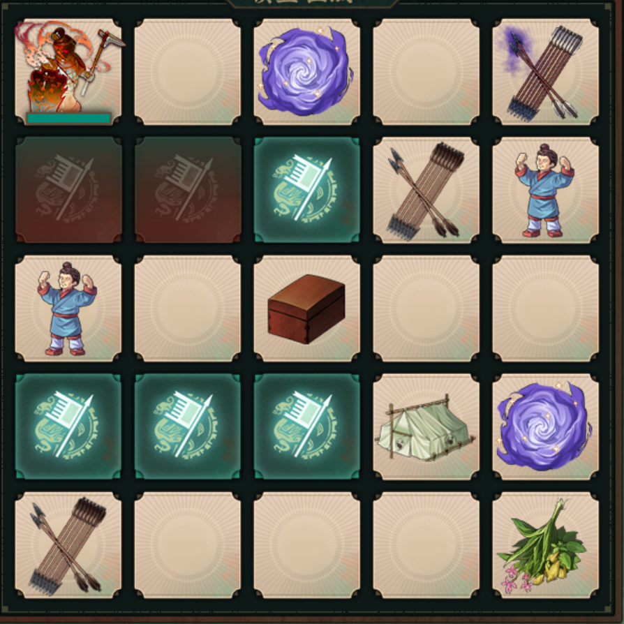 地图上未标记的点可能隐藏着敌人,特别提醒,三个特定格子不要轻易点击,以免触发不必要的战斗。草药与毒箭在此区域并无太大用处,建议忽略。其余资源则尽量收集,为后续战斗做准备。