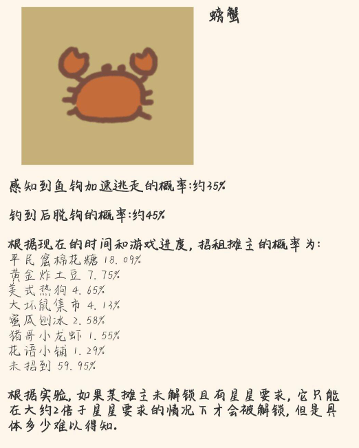 螃蟹和鲨鱼:这些深水鱼类需要提前下钩,并注意避开障碍物。钓螃蟹时,如果上方没有其他鱼,容易脱钩。鲨鱼和螃蟹适合佛系钓法。