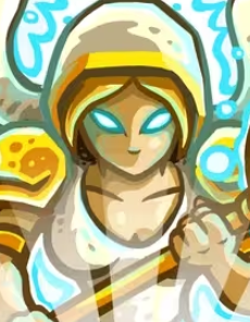 1技能:治疗圣光,为附近友军回复生命,并有概率复活阵亡友军,CD6秒,无法对自身和亡灵族友军使用。