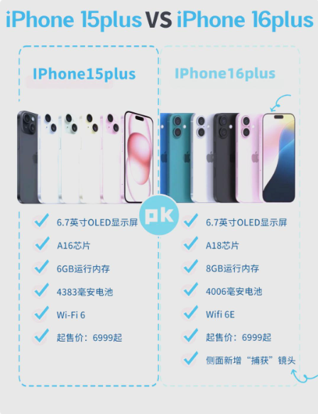 总体而言,iPhone 16 Pro系列在屏幕、相机及电池寿命上均有显著提升。而基础款iPhone16与16Plus的改进较为保守,特别是16 Plus的电池容量有所下降。考虑到iPhone15 Plus因降价至5399元而凸显的高性价比,对于注重实惠的消费者而言,它或许是一个更合适的选择。