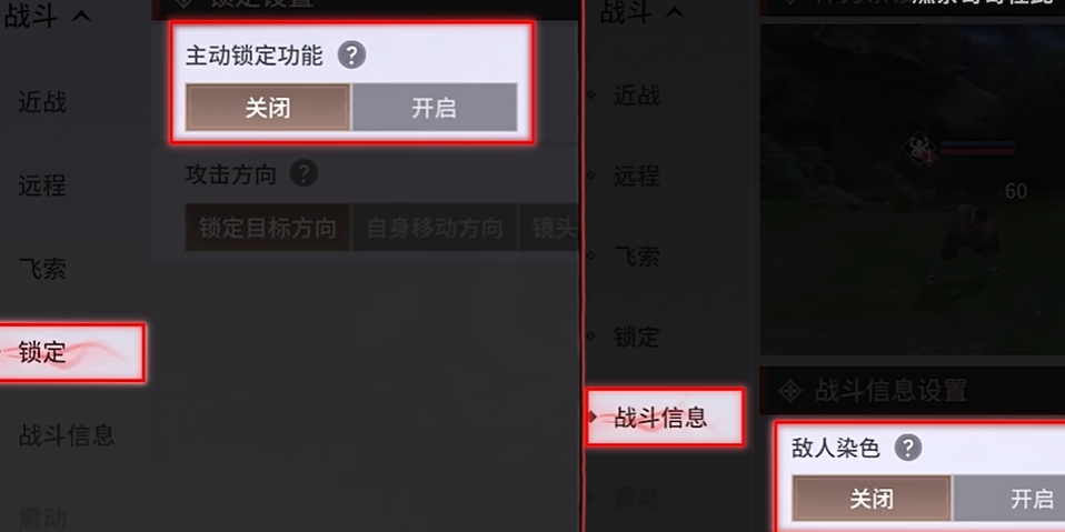 把主动锁定和敌人染色一起打开