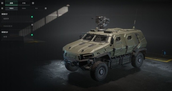 装备位2默认装载维修功能,当载具损伤以后可以第一时间进行维修。部分载具可以将维修功能改装为主动防御部件,在战斗中激活后可以有效抵御来袭的炮弹。