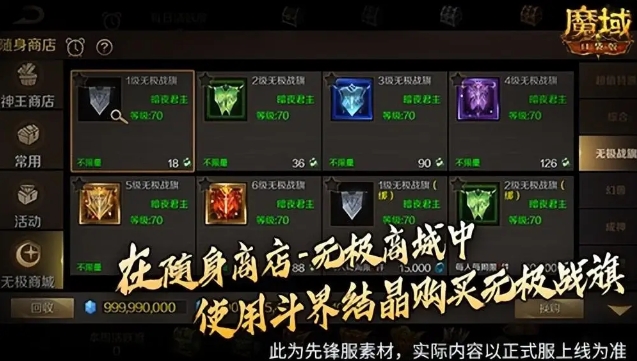 无极斗界是魔域口袋版全新的跨服军团玩法。只要你通过了成神试炼,并且已经加入了军团,就可以参与这个活动,和你的兄弟们一起为军团争夺荣耀。在无极斗界中,你可以完成斗魂悬赏任务,从而获得斗界结晶和斗魂值,星级越高,得到的奖励就越多。
