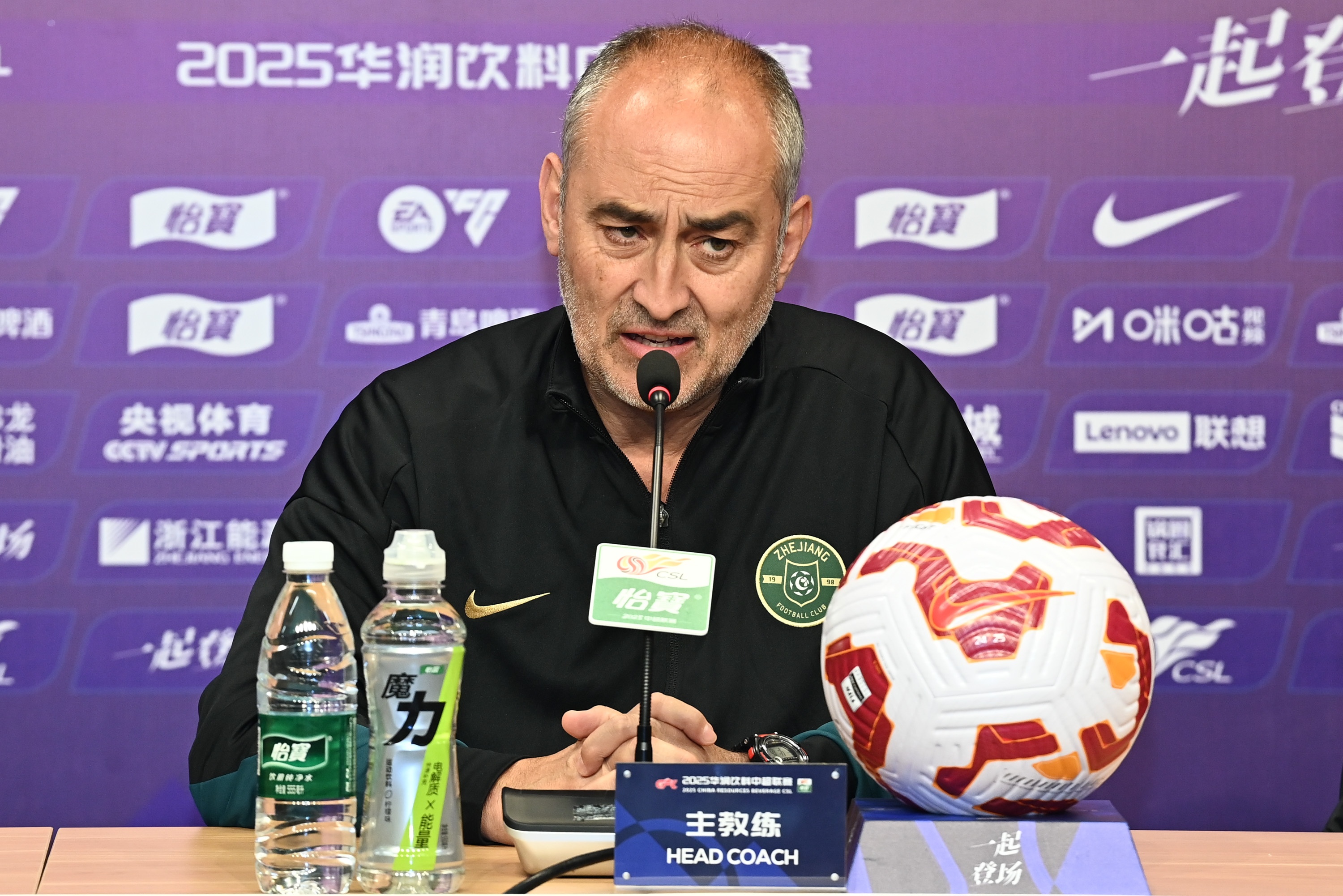 直播吧11月21日讯 中超联赛最后一轮,浙江队将主场对阵青岛海牛。据《足球报》报道,赛前,浙江队主帅卡内达携球员弗兰克出席了新闻发布会。