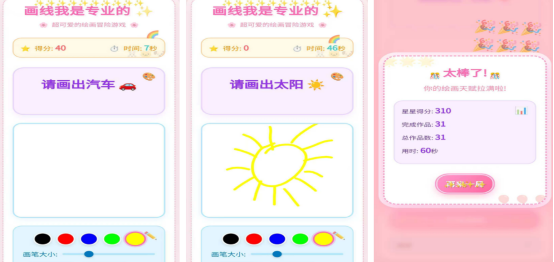 画画是一项极具创造性的活动!你只需运用简单的线条和色彩,按照规定的要求来完成你的作品。这里没有固定的规则限制,让你可以尽情发挥自己的想象力。例如,在某个关卡中,你可以用不同颜色的画笔描绘一个冉冉升起的太阳,或是设计一辆炫酷的汽车,从外轮廓到细节都可自由创作。无论选择什么样的主题,都能通过你的手展现出独特的创意和艺术感!