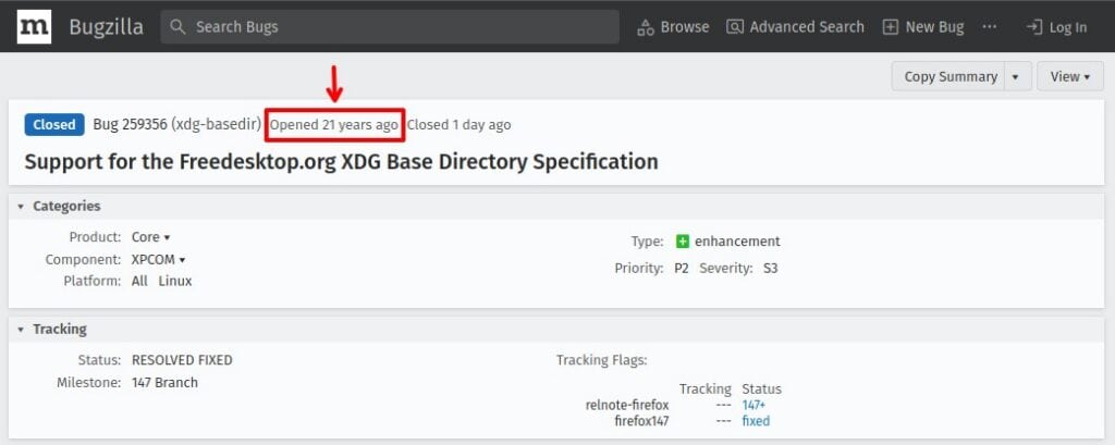 11 月 22 日消息,科技媒体 Linuxiac 昨日(11 月 21 日)发布博文,报道称在即将发布的火狐 Firefox 147 浏览器版本中,Mozilla 为 Linux 用户全面引入 XDG 基础目录规范支持,从而解决一个存在长达 21 年的 BUG(Bug 259356)。