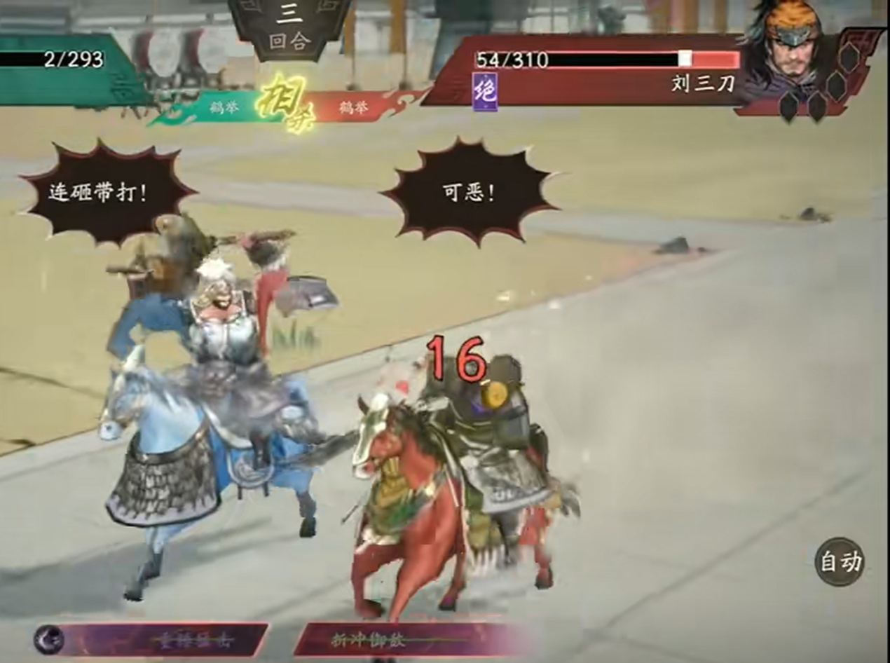 在对战中,刘三刀的主要威胁在于其强大的单体爆发能力和快速连续斩击。当主力输出或治疗单位被锁定并命中多段技能时,很可能导致队伍崩盘。为此,玩家需要灵活运用车轮战换人机制,通过多名武将分阶段承伤来确保伤害分散和状态保持。前排防御型武将如典韦、许褚具有出色生存能力,能有效抵御刘三刀的初期攻击,为后续输出留出安全空间。同时,恢复型辅助武将如华佗、蔡文姬需要全程提供生命回复与增益效果,保证队伍续航不断档。