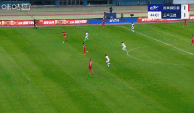 慢镜头回放,王上源回传时示意门将传右路,结果河南门将史成龙停球失误送礼。王上源也愣在原地。