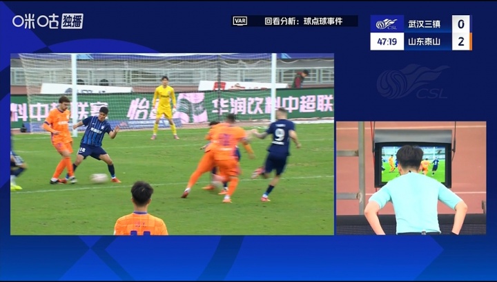 泰山获得点球!泽卡禁区内倒地,裁判亲自回看VAR