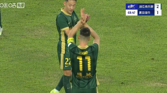 直播吧11月22日讯 浙江vs海牛第69分钟,弗兰克被换下场,完成自己代表浙江的最后一场比赛!