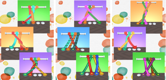 探索游戏世界:以精心设计的解绳关卡为主线,屏幕中色彩斑斓的绳结构成了一座独特的景观。解开绳索的关键在于精准分析缠绕顺序和找出优先拆解节点。只有合理规划路线才能成功分离指定绳段,挑战逐渐升级。初入者可能感觉轻松,但随着难度增加,逻辑思维与空间推理能力也需不断磨炼。