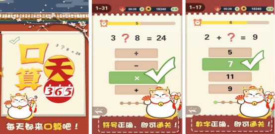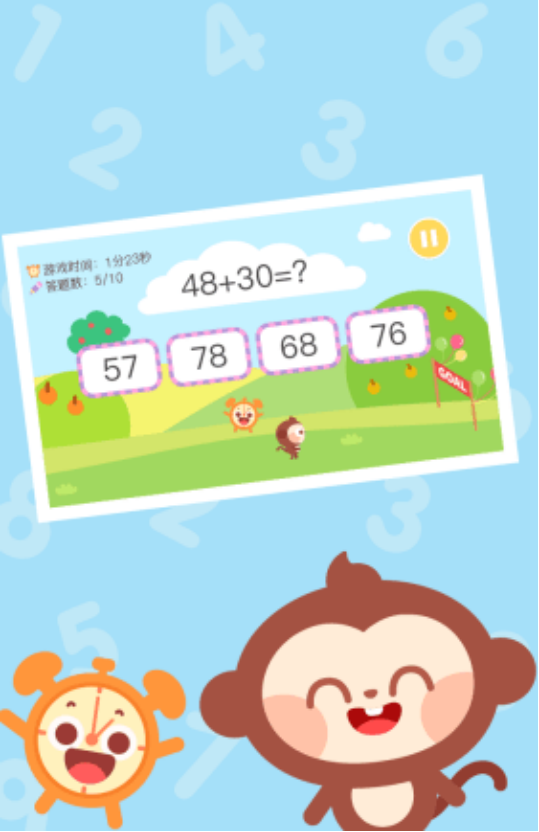 以趣味闯关为游戏核心,通过限时答题考验反应力与数学运算能力,带来紧张刺激的游戏体验。题目的设计遵循由易到难的递进规律,覆盖了不同年龄层的学习需求。涵盖数字速算、读数比拼等多种模式,内容丰富不重复,避免学习疲劳。操作简单直观,让孩子们快速投入到竞技式口算训练中。