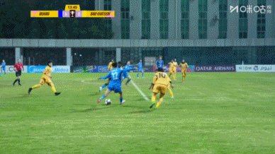 直播吧11月23日讯 女足亚冠小组赛B组,武汉车谷江大女足vs巴姆卡图恩,比赛第13分钟,代陈颖底线凌波微步连过数人倒三角,邓梦晔接球打偏。