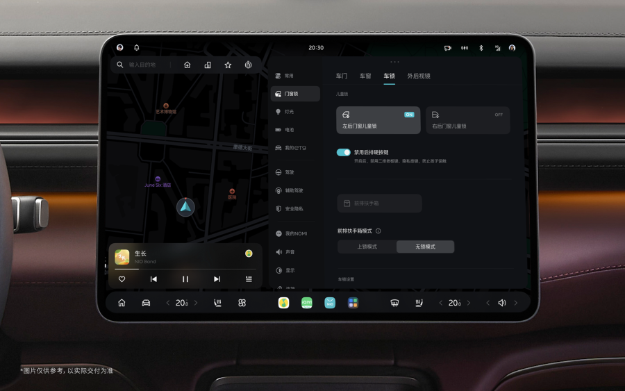 禁用后排硬按键功能:对于全新 ES8,新增了禁用后排硬按键功能,开启后,可锁定二排对一排座椅的调节,包含禁用二排扶手自定义按键、二排门板老板键与二排门板一键隐私按键,防止后排用户的误触行为。