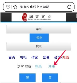 1.访问海棠文学城官网,点击首页右上角"注册"按钮。