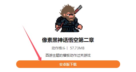 点击上方的下载入口进入本站的黑神话悟空像素版第二章下载详情界面,在下载界面找到【安卓版下载】按钮点击就可以进行下载安装了。
