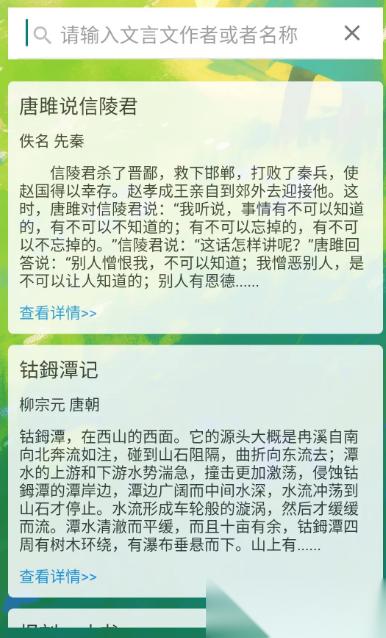 专为中学生设计的文言学习工具,整合教材重点篇目与成语词典。提供词语注解、作者简介和文章赏析等实用功能,通过典故解析帮助理解成语渊源。界面简洁明了,操作逻辑符合学生使用习惯。