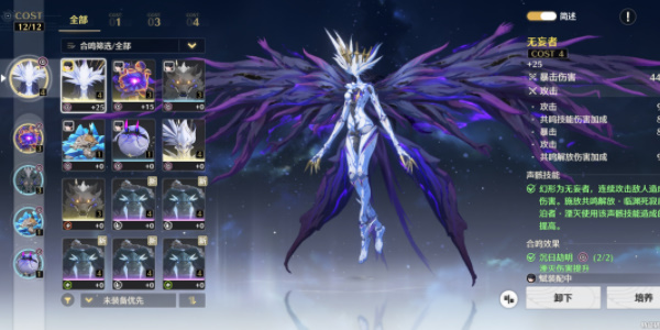 4cost:暴击伤害/暴击,3cost:湮灭伤害加成+攻击/湮灭伤害加成+湮灭伤害加成,1cost:攻击+攻击。