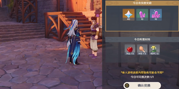 PS:旅行者每天最多可以交付一次材料。请注意每日奖励刷新时,交付材料的机会如未使用将无法保留。