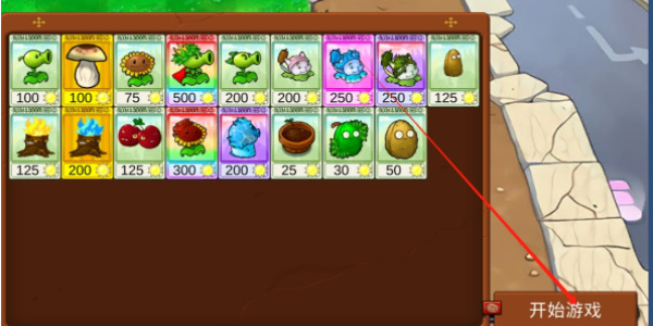 5、进入关卡后选择植物放入卡槽中点击“开始游戏”就可以开启挑战。