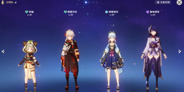 3、雷电将军+万叶+早柚+神里凝华