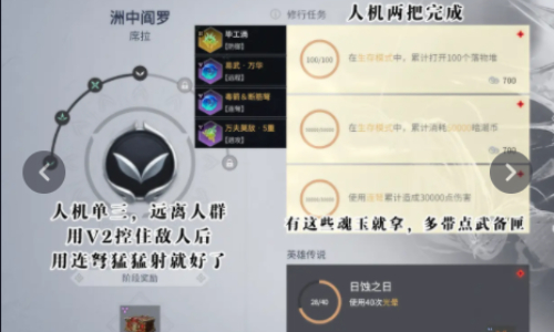 参与人机对局,远离人群,用v2控制敌人后使用连弩将其击杀即可,需要多场对局才可以完成。