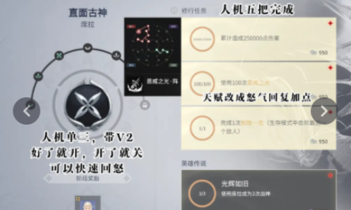 大概需要参与5场人机对局,带上V2,好了就开,开了就关,这样可以快速回怒,天赋加点也全部改为怒气回复加点。