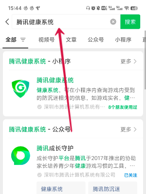 1、打开微信,点击上方的搜索图标,进入搜索界面输入【腾讯健康系统】。