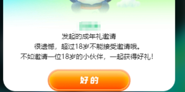5、这位好友必须是刚满18岁,超过这个年龄也无法领取。