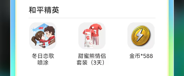 冬日恋歌喷漆、甜蜜熊情侣套装(3天)、金币*588。