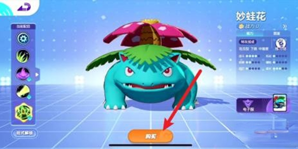打开宝可梦大集结,进入商城界面,在商城页面中选择妙蛙花,然后点击上面的购买按钮,就可以使用金币购买妙蛙花了。
