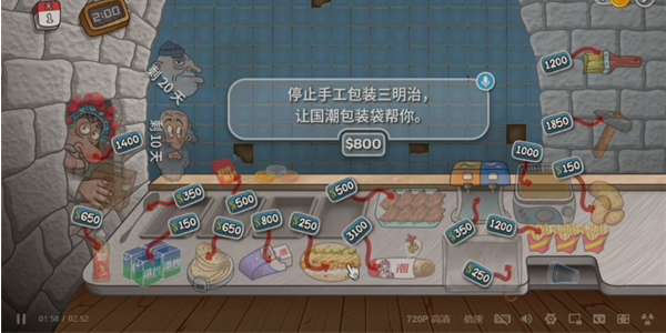 4、然后将卷饼使用包装盒包装起来就可以递给客人了,制作的卷饼能满足顾客的需求就能获得金币。