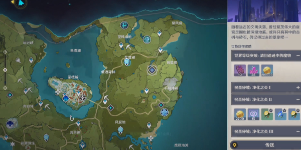 1、当玩家的冒险等级达到60级后我们接取突破任务,跟随指引传送到蒙德-副本【仲夏庭院】完成突破试炼。