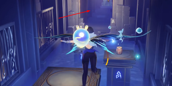 3、接着我们打开风之翼飞到对面的走廊中,如果体力不够可以中途停在平台上恢复体力。