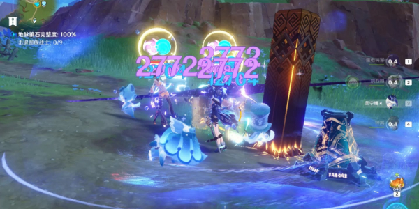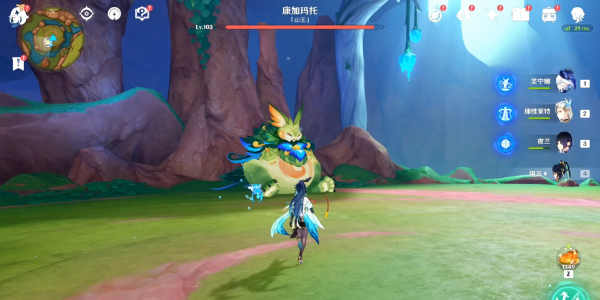 5、进入秘境深处我们开启挑战,挑战开启后一共有三波敌人,第一波是2个丘丘人游侠,第二波怪是一个遗迹龙兽,第三波怪是2个岩龙蜥。