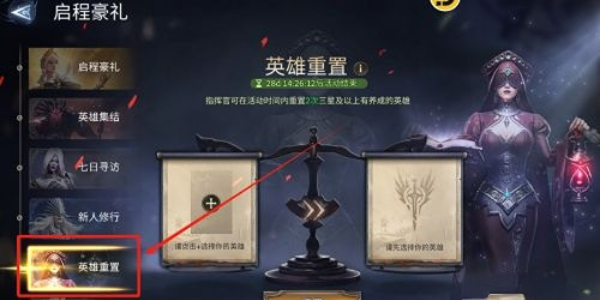 1、进入游戏后,我们首先进入【启程豪礼】,在启程豪礼页面找到【英雄重置】选项进入。