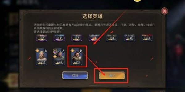 3、我们选择要重置英雄点击【确认】按钮,然后返回重置页面点击下方的【重置】按钮就可以完成英雄重置了。