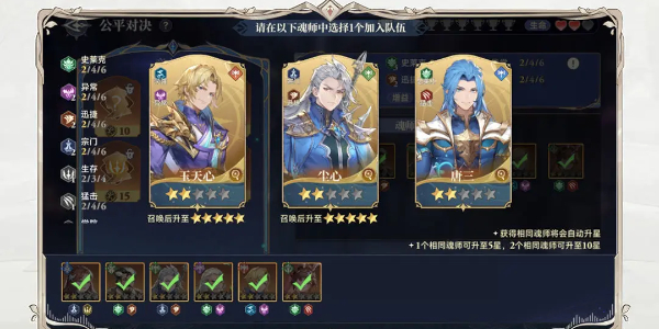 对局中系统提供的所有魂师初始星级都为2星,在本轮内获得重复魂师,可以提升魂师星级。