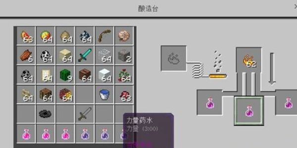 9、力量药水延长版:粗制药水+烈焰粉+红石