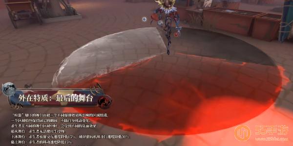 “喧嚣”脚下的舞台由被三个不同爆弹效果所影响的区域组成,三个区域始终保持固定的朝向,不随自身移动变化。求生者在不同的舞台区域中时,会受到不同的负面效果。