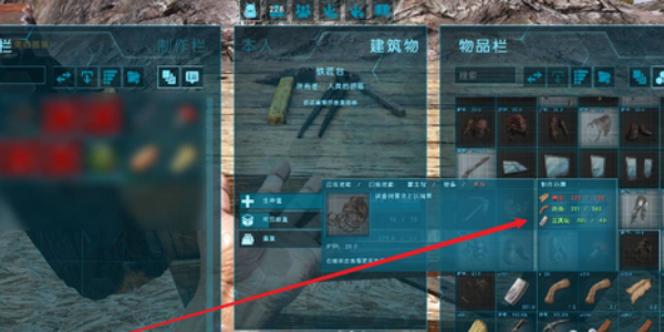 2、在铁匠台旁打开物品栏,将制作需要的材料放入物品栏里面。