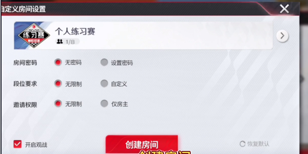 2、在自定义模式中我们创建自己的游戏房间。
